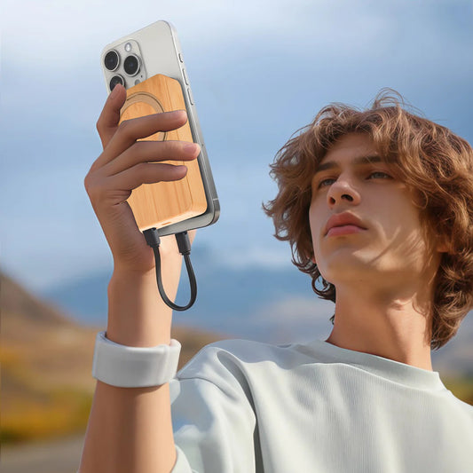 Edsonsoon MT508 EcoMag Bamboo Power Bank – 15W MagSafe Wireless Charger with 20W PD & 18W USB Fast Charging