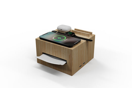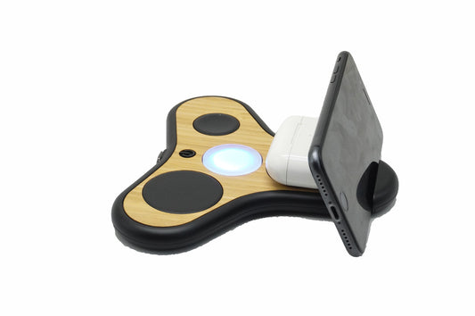Edsonsoon MT559 4-in-1 Bamboo Wireless Charger – Phone Holder, Ambiance Lamp & Multiple Charging Stations